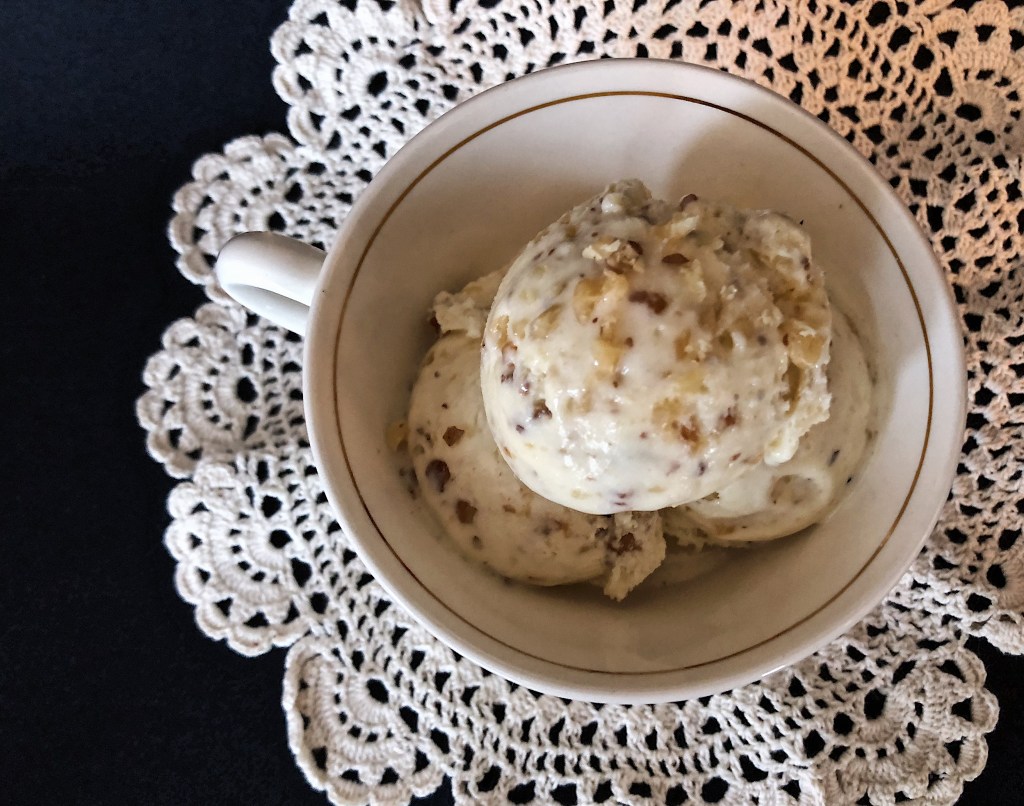 This ice cream really is delicious. It is very rich and very sweet, but I do like the walnut flavor a lot. I was also surprised by how soft and creamy the texture is, especially when done entirely by hand! It is also worth noting that this could technically be considered a frozen custard by modern FDA standards, not “ice cream.”