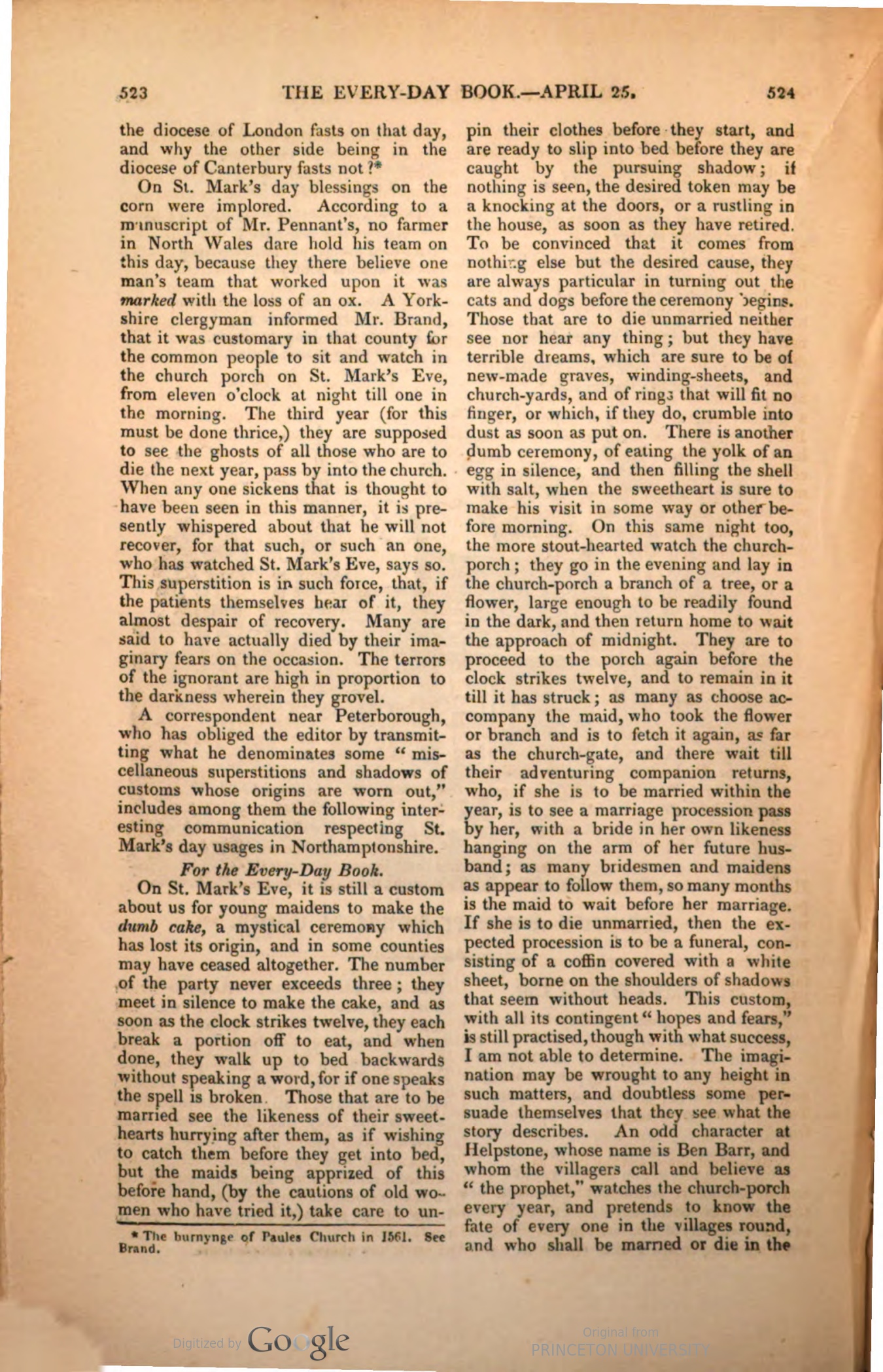 Description of a dumb cake ritual from The Every-day book and Table book (c. 1826). Public Domain.